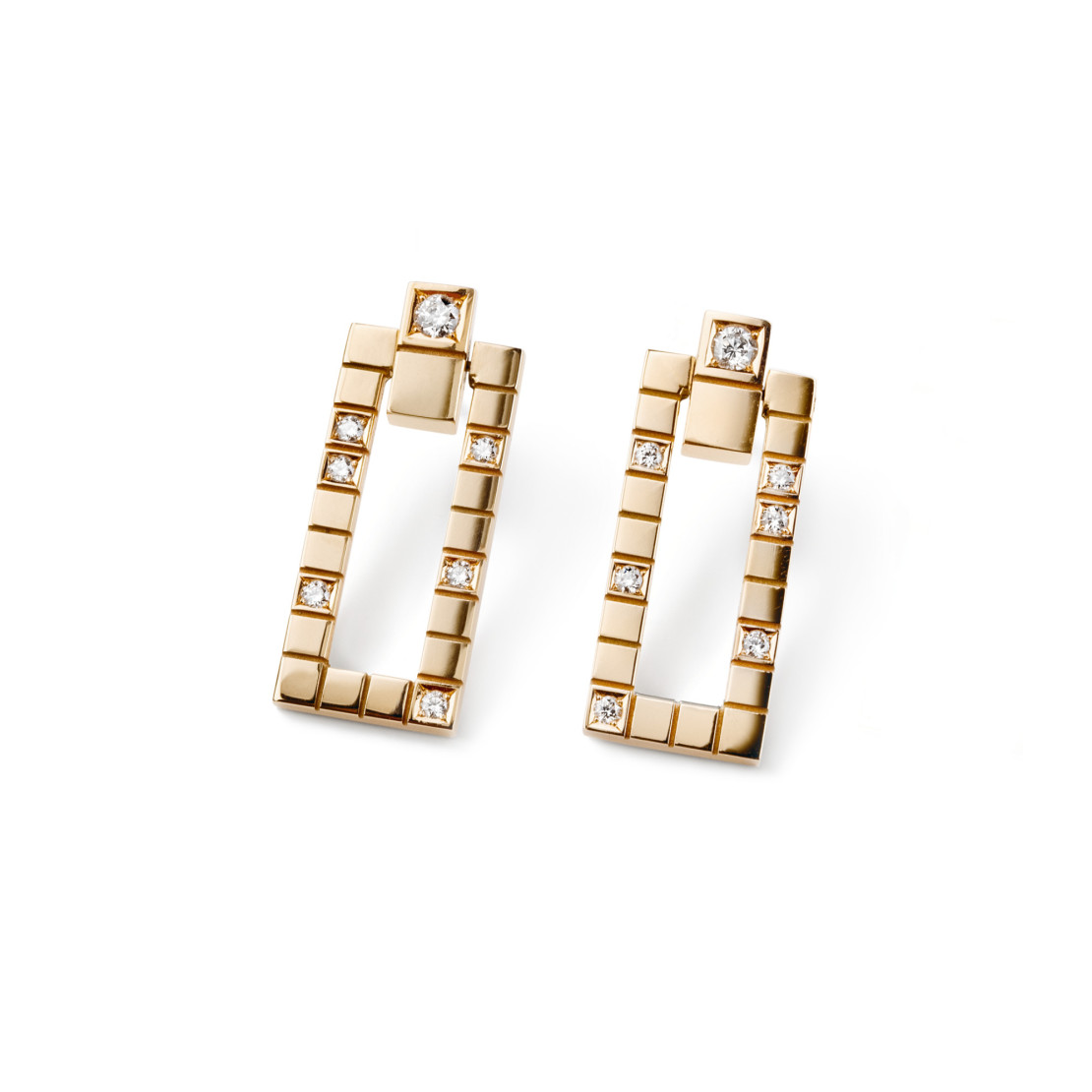 Ref. 122210 - Struktur, Rhythmus, Raffinesse – die Ohrstecker aus der Kollektion Mosaïque bringen das Spiel aus Fläche und Funkeln auf den Punkt. Rechteckige Goldsegmente wechseln sich mit funkelnden Brillanten ab und bilden eine grafische, klare Form, die zugleich Bewegung und Tiefe ausstrahlt. Architektonisch im Aufbau, weich im Glanz – ein Schmuckstück für Frauen mit Haltung und Stil.