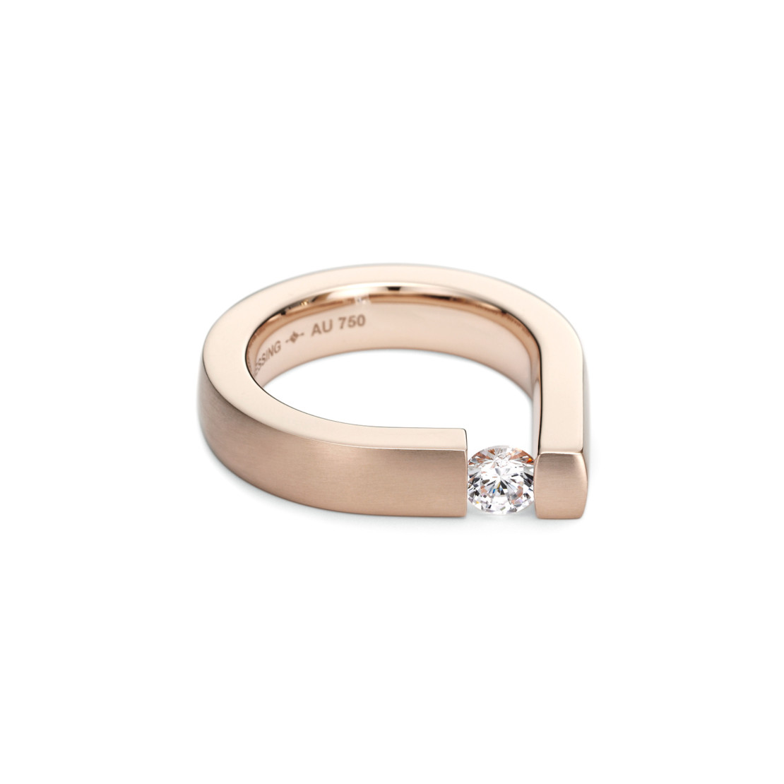 Ref. N351919-0.4ct-gvs2-rw - Der Niessing Spannring® Bauhaus übersetzt gestalterische Grundsätze des Bauhauses konsequent in drei Spannring-Modelle. Die Ringform geht vom Kreis in einen rechten Winkel über. Das rechteckige Profil ist innen und außen leicht gespannt und schmiegt sich angenehm an den Finger.