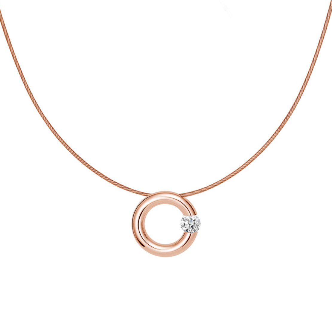 Ref. N353924-16mm-0.4ct-gloss-cr - Eine der größten Niessing Design-Ikonen – so klein und zart wie noch nie. Die feinen Proportionen des Niessing Spannring® Anhängers stellen höchste Ansprüche an die handwerklichen Fertigkeiten unserer Goldschmiede und Steinfasser. Der Brillant wird liegend eingespannt. So ist er dem Betrachter zugewandt, frei und doch geborgen: Ein kostbarer, funkelnder Brillant im Augenblick der Spannung.