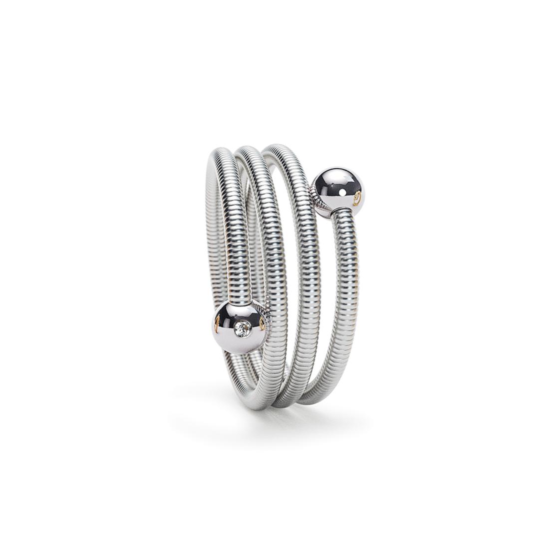 Ref. N371523-1br-pt - Fein, weich und anschmiegsam: Für den Niessing Colette C Embrace Ring windet sich die Niessing Schnur bis zu fünfmal um den Finger, zwei glänzende Kugeln bilden den Abschluss. Wenn Sie möchten, schenkt ein feiner, eingefasster Brillant jedem Tag das gewisse Extra-Funkeln. Seine Position im Ring lässt sich nach Lust und Laune verändern: »Heute bin ich ganz bei mir – aber morgen strahle ich die Welt an.«