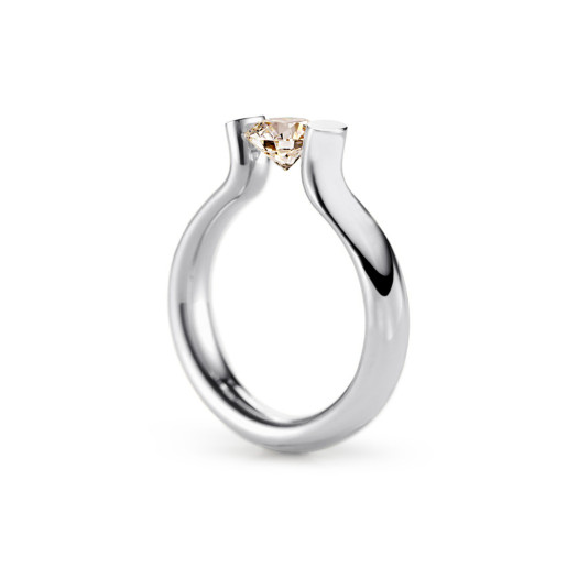 Ref. N371994-4mm-1ct-cinnamon-gloss-pt - Zart und prachtvoll: Ein sanft gerundeter Ring öffnet sich schwungvoll nach oben und hält den großen Brillanten schwebend in spektakulärer Höhe. Dem Himmel entgegen … Der zarte Niessing Spannring® Heaven lässt den Brillanten in spektakulärer Höhe über der Hand schweben: Als Schmuckring ein perfekter Solist – aber ein ebenso perfekter Teamplayer. Er lässt genug Raum für seinen Nachbarn, den Trauring – und schmiegt sich ganz selbstverständlich an einen Niessing Satellite Ring. Erhaben schwebt der funkelnde Brillant im Niessing Spannring® Heaven über der Hand: Sinnlich, feminin, prächtig.