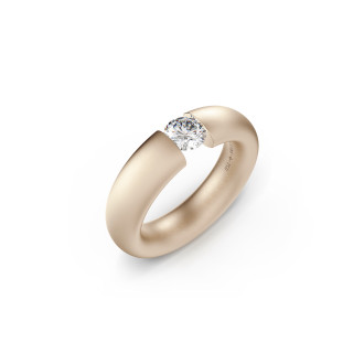 Ref. N371994-4mm-1ct-fvs1-gloss-fg - Zart und prachtvoll: Ein sanft gerundeter Ring öffnet sich schwungvoll nach oben und hält den großen Brillanten schwebend in spektakulärer Höhe. Dem Himmel entgegen … Der zarte Niessing Spannring® Heaven lässt den Brillanten in spektakulärer Höhe über der Hand schweben: Als Schmuckring ein perfekter Solist – aber ein ebenso perfekter Teamplayer. Er lässt genug Raum für seinen Nachbarn, den Trauring – und schmiegt sich ganz selbstverständlich an einen Niessing Satellite Ring. Erhaben schwebt der funkelnde Brillant im Niessing Spannring® Heaven über der Hand: Sinnlich, feminin, prächtig.