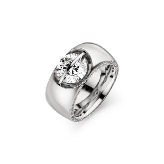 Ref. 218_L1040_30_WW - Mit dem Liberté® hat Schaffrath 2002 eine absolute Weltneuheit präsentiert und so ziemlich alle Kriterien des bis dato technisch Möglichen in der Diamantschmuckherstellung auf den Kopf gestellt. Während der Diamant in harkömmlichen Fassungen fest verankert ist, verleiht das patentierte Liberté®-Fassungssystem dem Stein eine vollkommene Bewegungsfreiheit von 360°. Mit atemberaubendem Ergebnis: Jede noch so kleine Bewegung verändert die Position des Diamanten und lässt ihn im Licht tanzen. Gleich einem funkelnden Feuerwerk wird das Licht von den unzähligen Facetten des Steins zurückgeworfen und strahlt so in allen Spektralfarben und in alle Richtungen. Mehr als 1000 Stunden Entwicklungszeit hat es gebraucht, um das Kunstwerk Liberté® zur Vollendung zu bringen.
