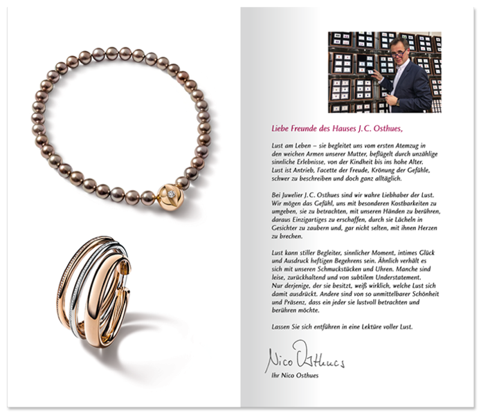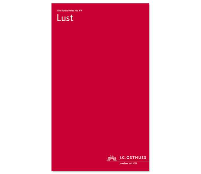 „Bewegung“, „Pracht“, „Schatz“, „Freude“, „Mut“, „Genuss“ und jetzt: „Lust“ – immer spiegeln die Themen unserer „Roten Hefte“ einen direkten und einen indirekten Zusammenhang zu dem, was uns bei Juwelier J.C. Osthues bewegt. Zum Jahreswechsel 2016/2017 ist nun das „Rote Heft No. 64“ zum Thema „Lust“ erschienen.